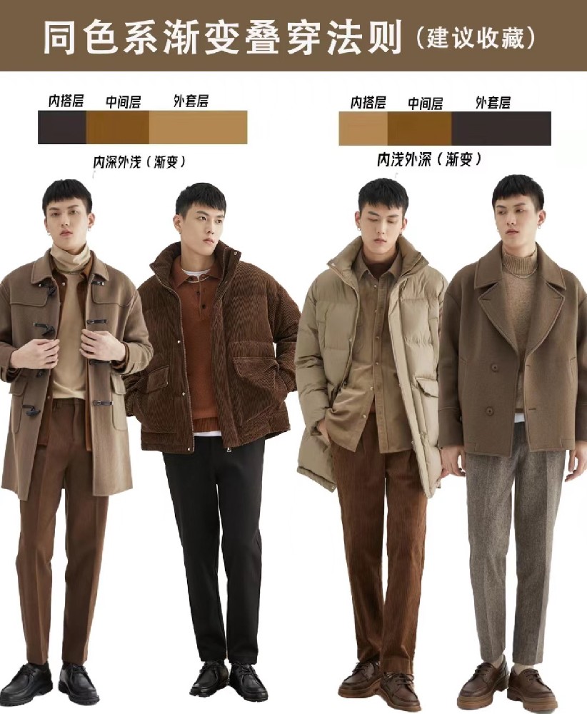 1、三明治疊穿法則包括內搭、中層“夾心”和外套,外套和打底的顏色一定要是同色內搭的挑選。這個不用多說,版型以修身為主,比較常用的就有高領毛衣,第二層“夾心”,大多···